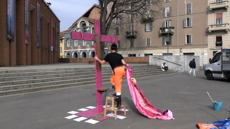 Milano, installazione artistica contro ddl Bongiorno: “Il consenso non si mette in croce”