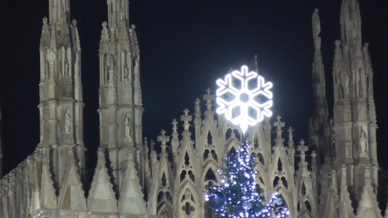 Acceso in piazza Duomo l’albero di Natale dedicato alle Olimpiadi Milano-Cortina 2026
